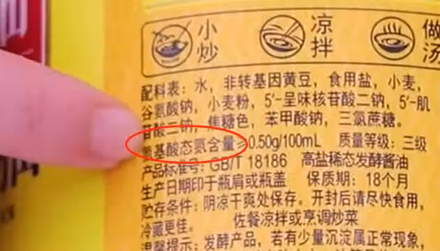 如果胺基酸態氮含量大於或者等於每100毫升0.4克的話,就是說明我們醬油是比較合格的,數值越高越好,0.5還算可以。