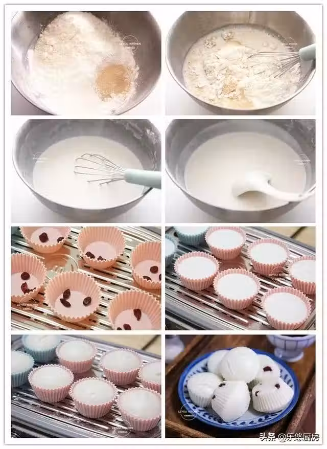 3、我用的是矽膠模具,不粘效果比較好。大家如果沒有,可以用普通的小蛋糕模具或者小碗來蒸,但提前一定要抹一些油,這樣方便脫模。