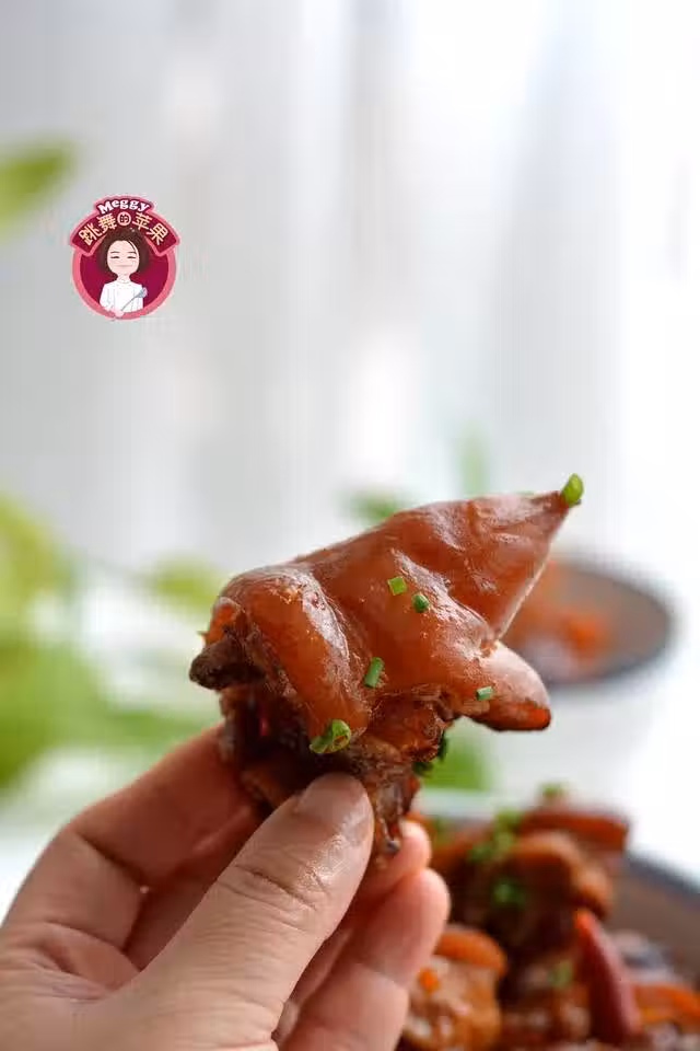 香辣材料:紅燒豬蹄1盤,朝天椒1把,青辣椒3根,香蔥數棵,姜1塊,八角2顆,植物油適量,鹽少許