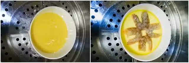 製作小貼士:蒸蛋的時候,基本像用碗裝蛋的這個,大概需要10分鐘的時間,蝦蒸的時間約6分鐘就可以全熟了,所以為了每一種食材都能恰當好處的好吃,我們一定要分開來放。