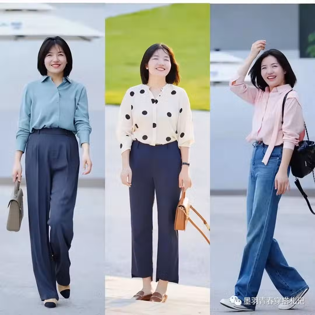 搭配襯衫與西裝褲時依然要注意減法的運用,過度的色彩濫用會讓我們的線條更加凌亂,無法發揮出西裝褲和修身褲塑造形體的作用,簡潔的純色或波點襯衫搭配基礎款西裝褲就很好看了。