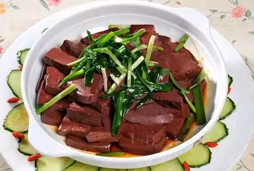 豬血、韭菜、色拉油、食鹽、蔥、姜、料酒。