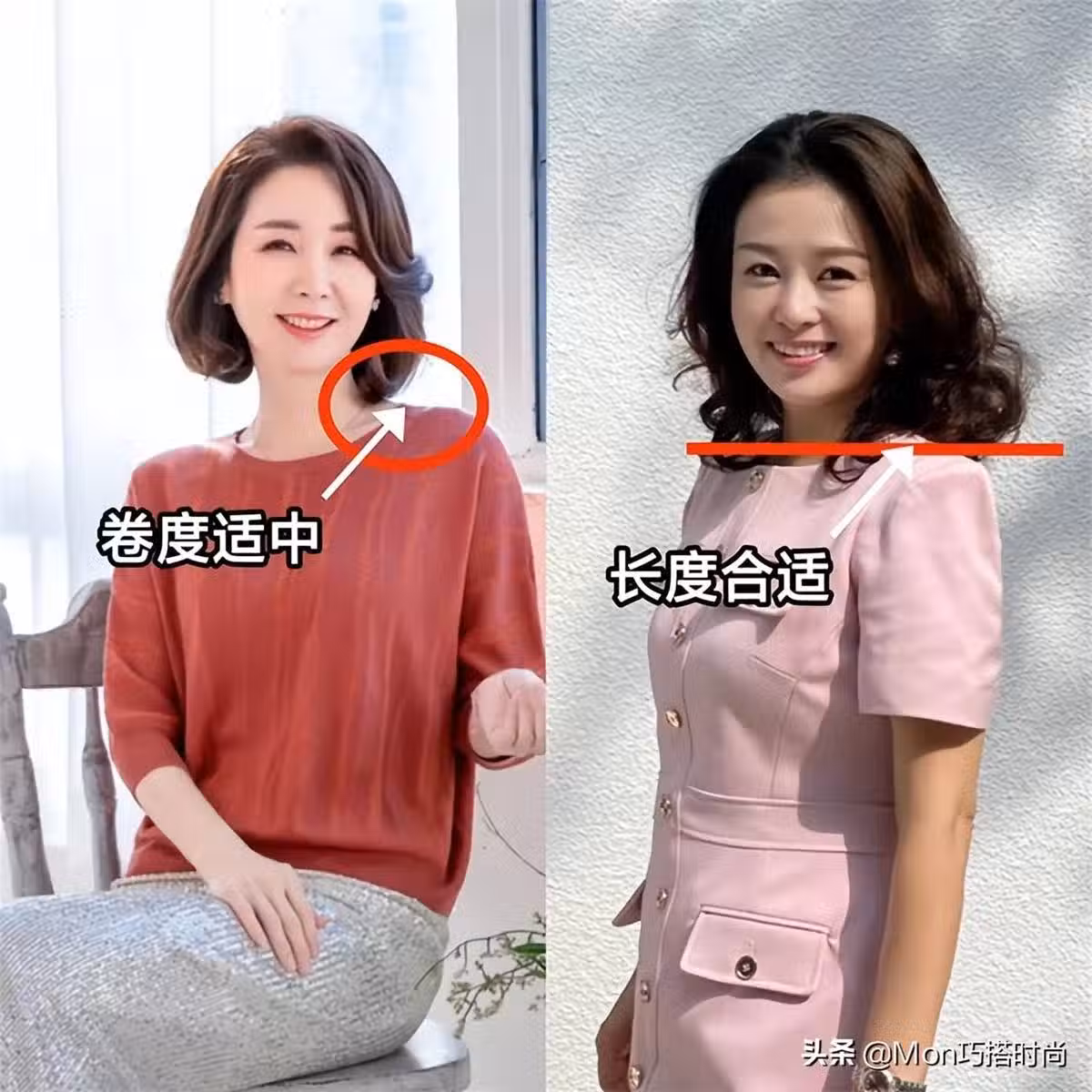 最適合中老年群體的發長除了短發以外,還可以選胸部以上,耳朵以下的中長發或鎖骨發。每一款都很減齡哦~