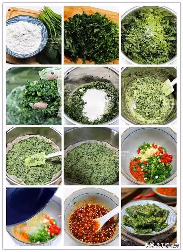 3、麵粉不要一次性的放入菠菜中,一定要一點點的來加。一次性放太多的話,不易掌握水量,口感或硬或軟。