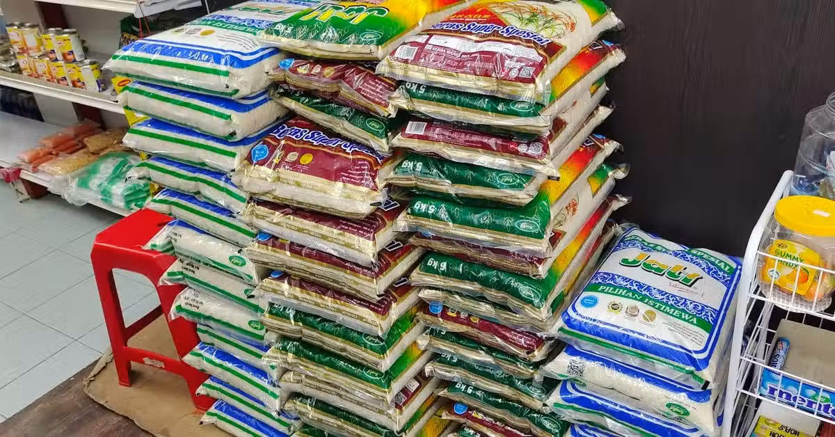 我的攤位是用Jati牌子超級長占白米,比較大粒和好吃,現在生意不是很好,所以每星期買一次一包10公斤。