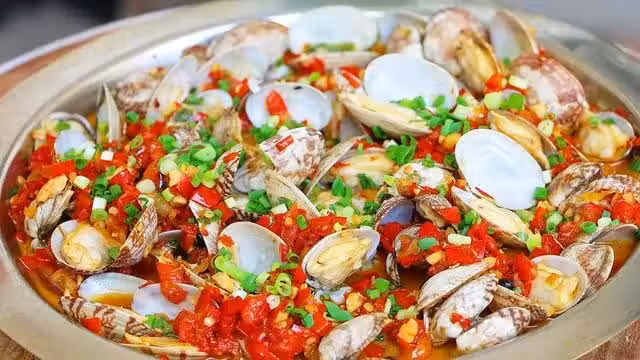 2、油熱下蔥姜蒜、花椒、干辣椒炒香後,倒入花甲,淋入調好的料汁,一把蔥段翻炒兩下就可以出鍋。香辣入味又好吃,你也趕緊收藏做起來吧。