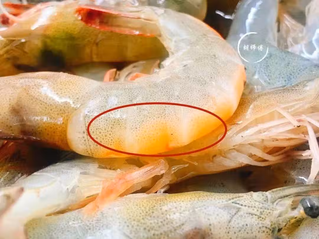 有一些蝦拿起來,蝦頭和蝦尾已經出現明顯的脫落,這就代表蝦放的時間過長,蝦頭已經開始腐爛變軟了,這種蝦千萬不要買,因為這種蝦已經不新鮮了,肉煮熟後吃著會非常腥。