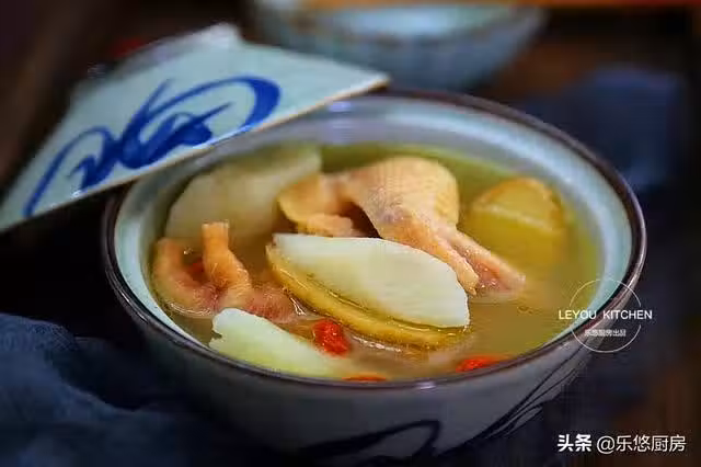 山藥雞湯,綿軟的山藥和鮮美的雞肉搭配在一起,再放入少許枸杞,口感豐富,營養翻倍。