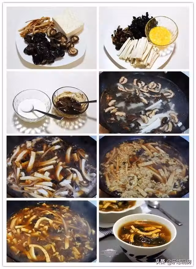 第七步:將剩下的一半水澱粉倒入鍋中,再次燒開後攪拌均勻,再淋少許香油即可關火。