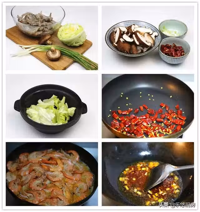 第十步:把鍋里的蝦、香菇連帶湯一起倒入裝有生菜的大碗中。(為了美觀,可以將蝦擺個造型)