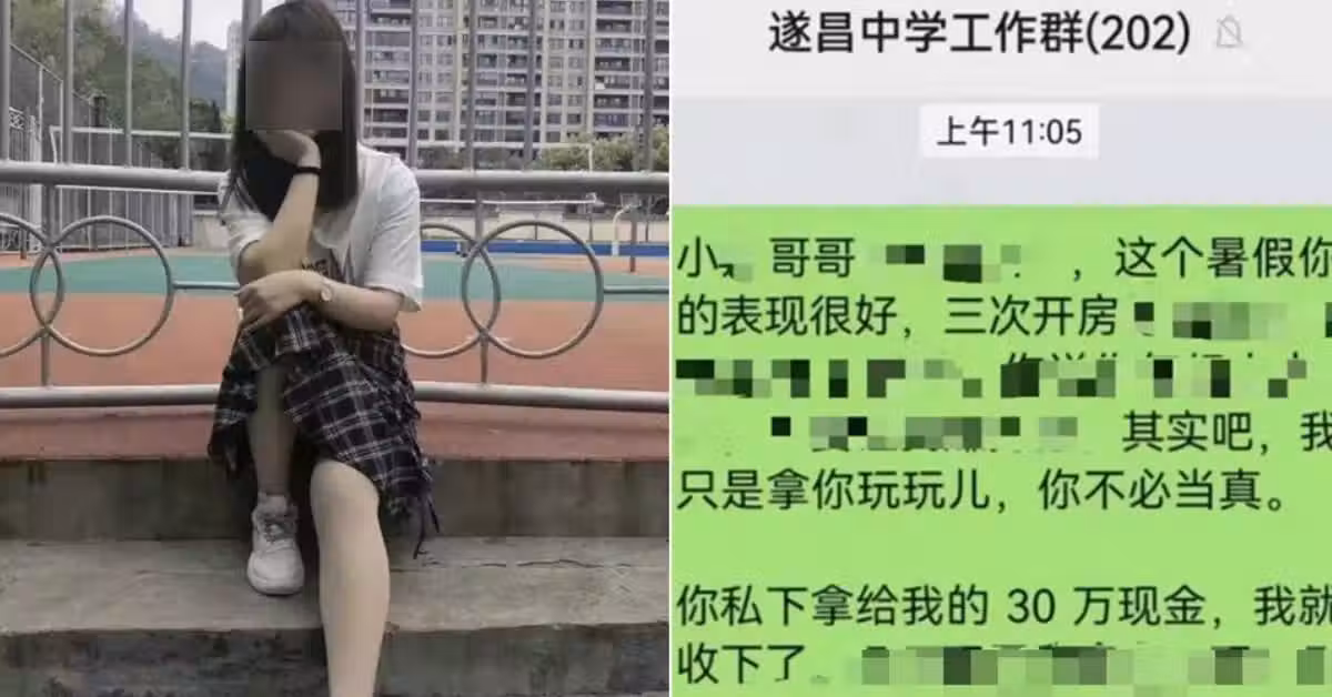 (北京17日綜合電)中國浙江省麗水市遂昌中學一名李姓美女教師,近日在微信朋友圈公布6張在學校工作群組的對話截圖,宣稱是「送給遂昌中學全體師生的教師節禮物」,而內容竟然是她自曝與同校多名教師收錢性愛、關係曖昧等內容,有12名教師被波及。校方則強調內容不實。