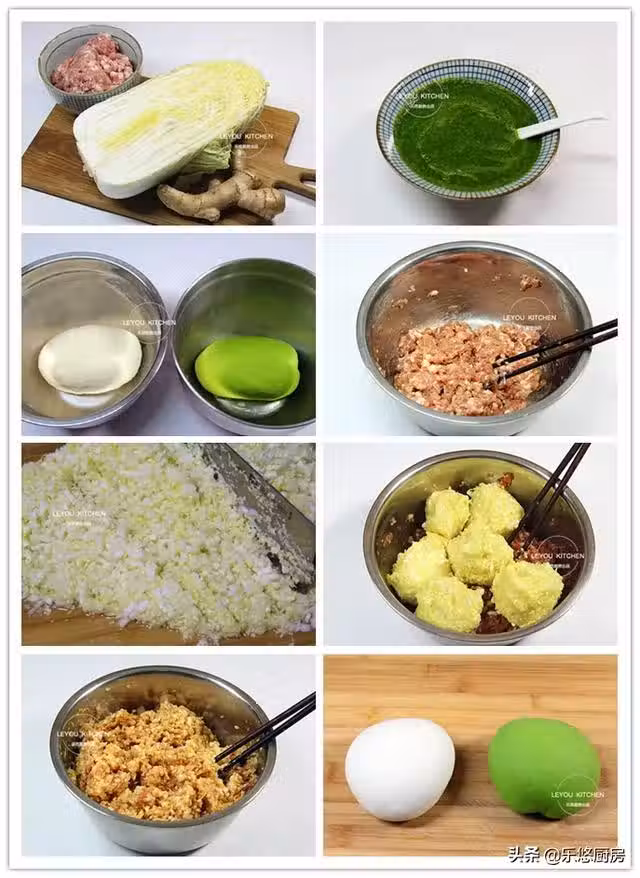 2、 做這道餃子,兩種麵糰的軟硬程度、大小一定要相當。
