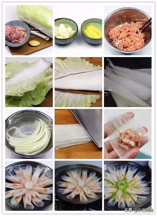 第十一步:開水上鍋,把白菜釀肉放入鍋中大火蒸10分鐘。(如果包的肉餡比較多,可以適當的延長蒸製時間。)
