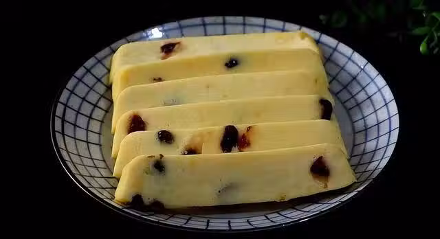 5:蒸熟的酸奶蛋糕取出切成小片就可以食用了;