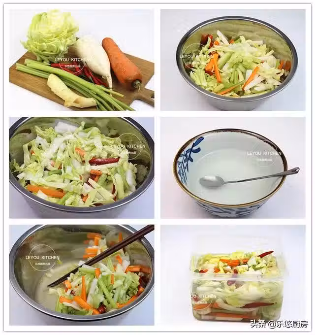 第六步:將所有食材和泡菜水一起放入保鮮盒中,翻拌均勻,蓋好蓋子放入冰箱冷藏一晚就可以食用了。
