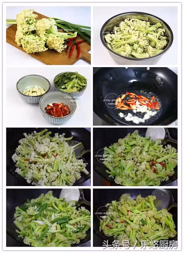 第五步:把瀝干水分的菜花放入鍋中翻炒2分鐘。