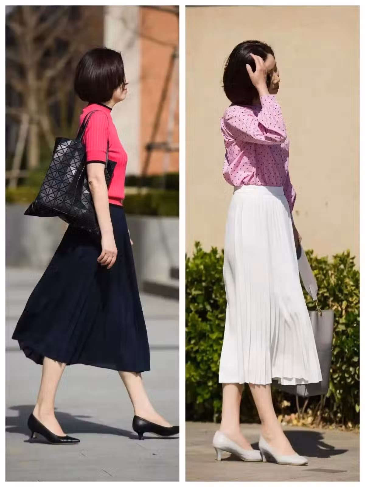 對於50歲的女性來說,最適合的單品,一定是黑白色的百褶裙,這兩種裙子風格相似,搭配艷麗色彩的時裝,一樣不會讓穿搭出錯,而是能夠呈現出更好的狀態。