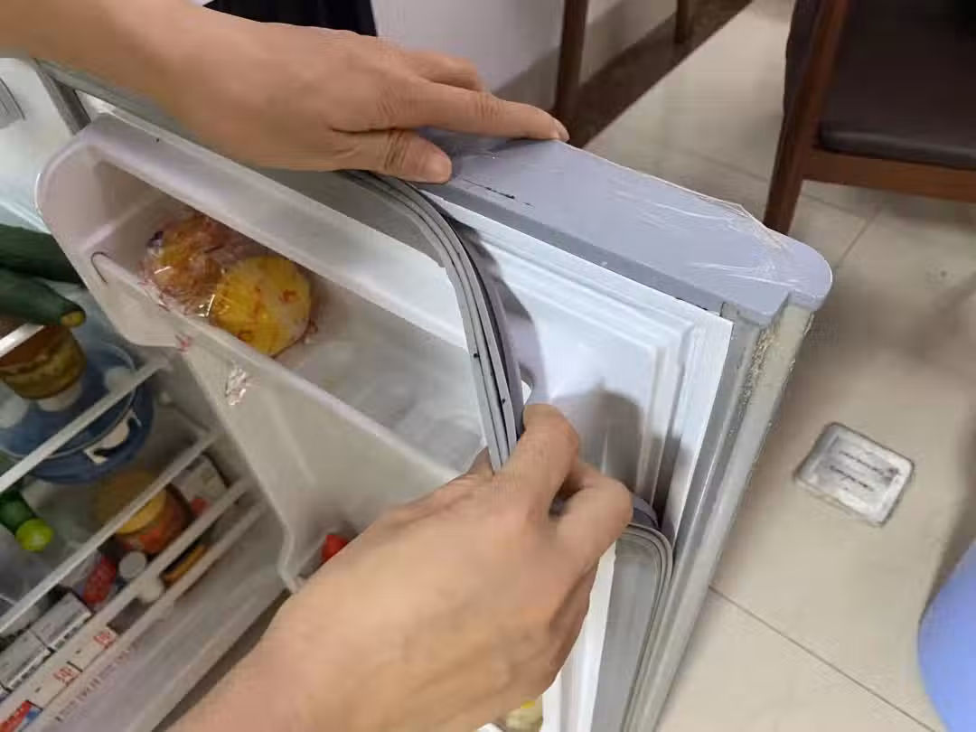 第一步:拔密封條,這個步驟很容易,你只要輕輕地把膠條從冰箱門上拔出來就行了。 不過,在拔的時候要注意兩點:一是不要用力太大,不然會把膠條拉壞;二是要記住膠條原來在哪個位置和方向,方便裝回去。