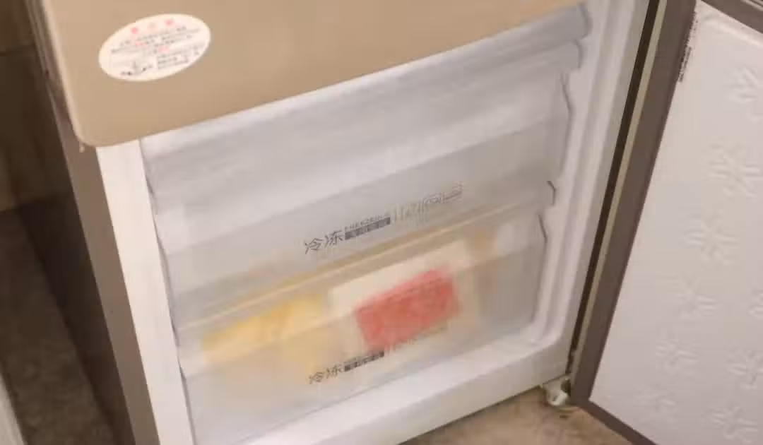 第三步:將包好的豬肉放入冷凍室中保存起來。