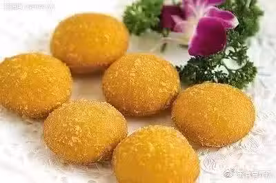 3. 坐鍋,倒入食用油,點火,到四成熟時,將圓餅投入油中炸熟至呈金黃色即成。