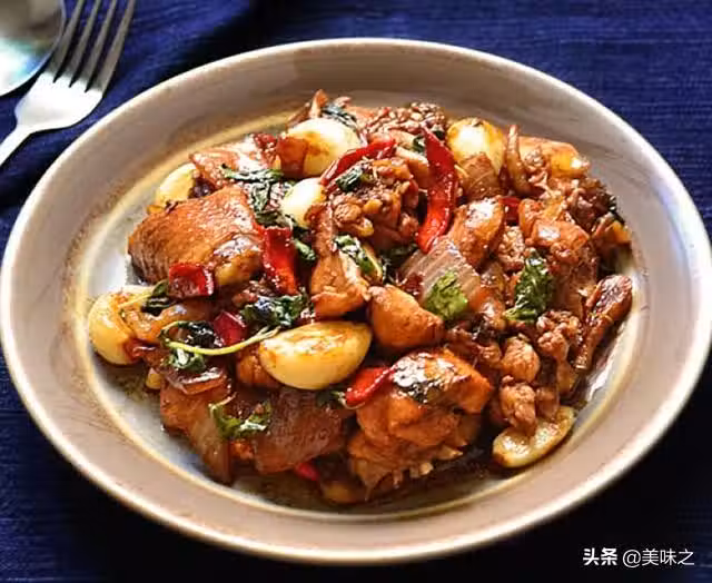 8、轉小火至湯汁濃稠,翻炒使湯汁包裹在雞肉上,盛出裝盤即可食用。
