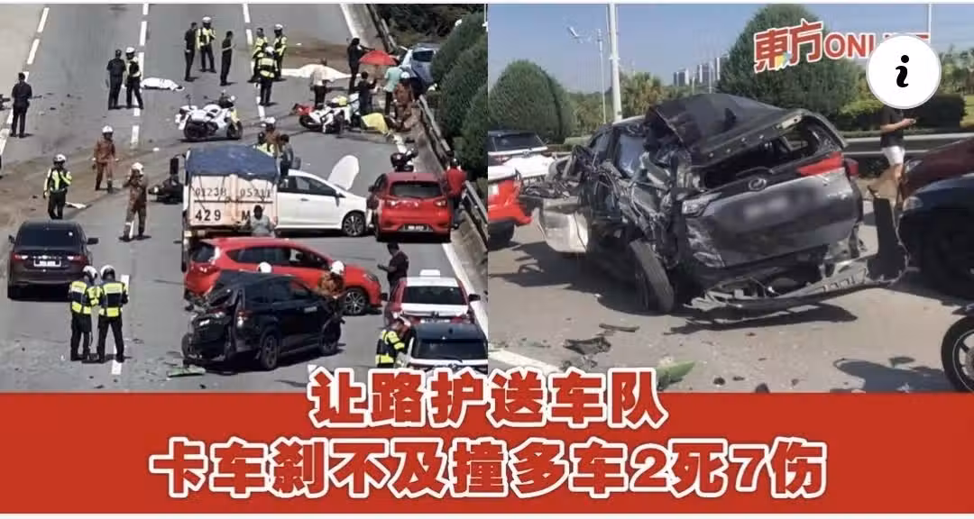 讓路護送車隊 卡車剎不及撞多車2死7傷