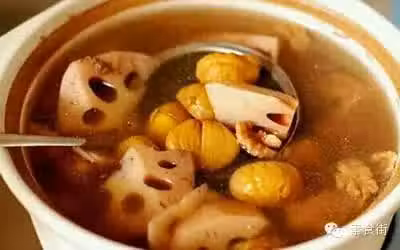 材料:核桃2兩,蓮藕1斤,蓮子2兩,栗子8兩,陳皮1片,紅棗10粒