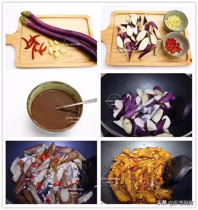 第五步:煸炒至茄子變軟,然後將蒜末和紅辣椒段放入鍋中煸炒出香味。