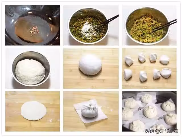 第十八步:包好的包子放在蒸籠上(蒸籠提前抹些油或墊上油紙),進行第二次醒發(大概需要15分鐘左右)。醒髮結束後開始蒸包子。大火燒至蒸鍋冒氣後,轉中火再蒸十五分鐘。蒸好後放置幾分鐘再揭鍋蓋取出(以免包子突然遇冷後表皮回縮)。