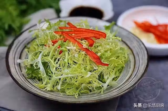 第二步:把苦菊撕成小段,清洗乾淨備用。