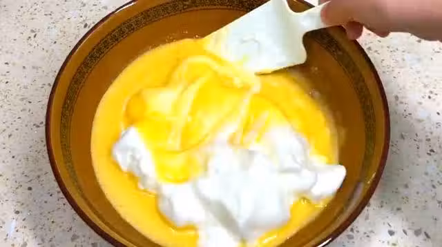 翻拌均勻後,快速從高處倒入四周刷油的不鏽鋼盆中,輕摔幾下,震出氣泡,在盆底墊一層吸油紙效果更好。