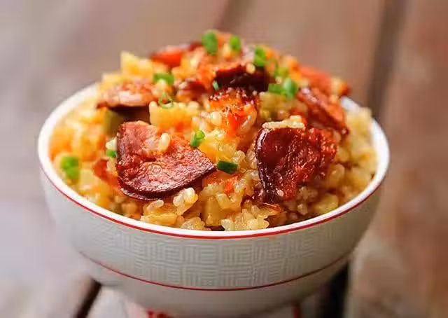 香腸一小根、蒜薹一小把、土豆半個、胡蘿蔔半個、生抽一勺、蚝油半勺、米適量。