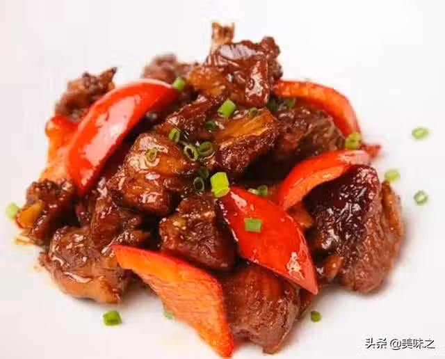 5、最後開大火收汁,湯汁快要收干時,放入切好的彩椒塊,略微翻炒。湯汁濃稠時即可出鍋。撒上少許蔥絲,一份香濃可口的啤酒鴨就大功告成了。