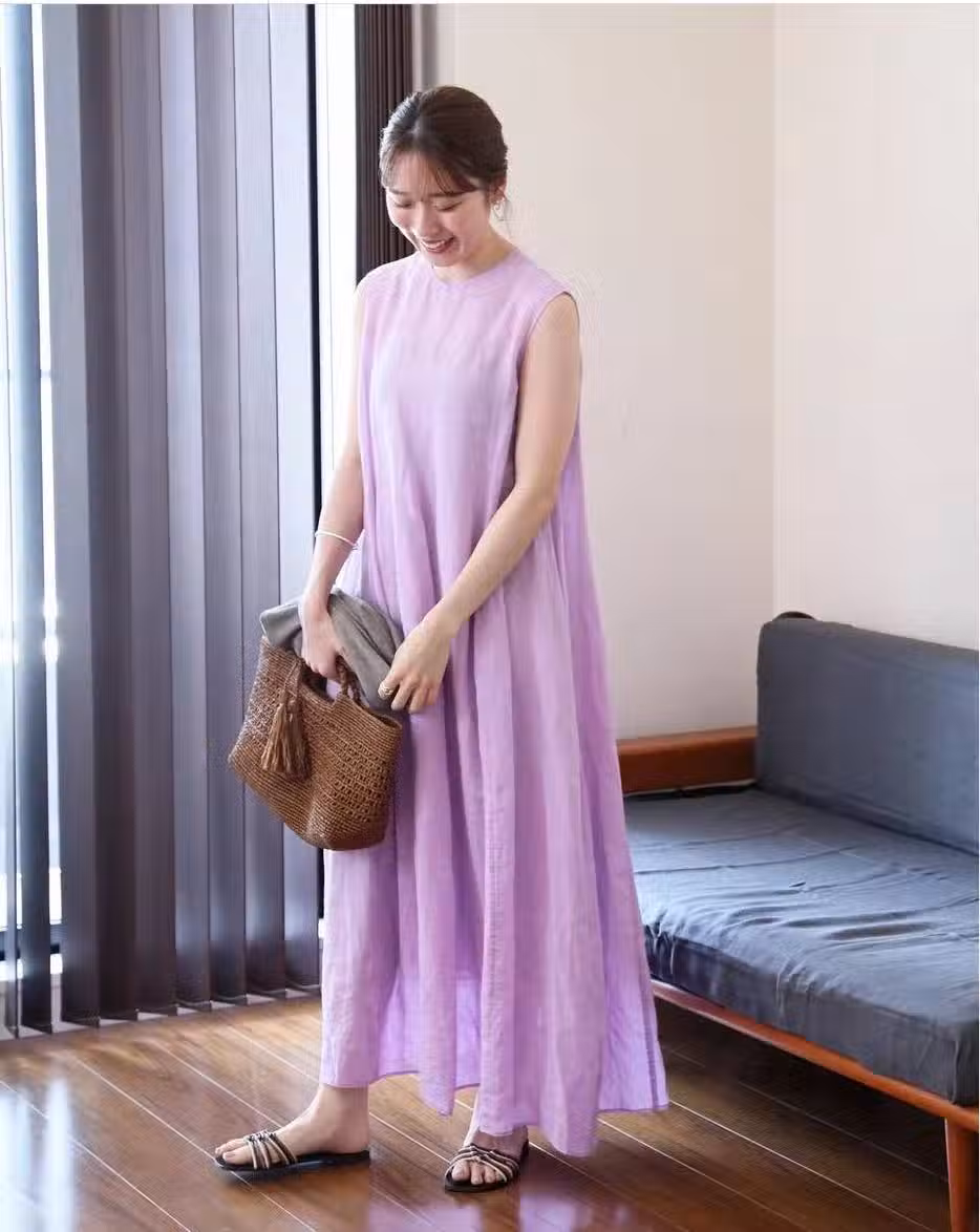 夏天來一條香芋紫色的亞麻裙,通透的質感配合著簡約流暢的設計,集慵懶灑脫於一體,釋放著獨屬於夏日的浪漫神秘感,不得不感嘆亞麻質地的高級,即使是高傲冷艷的紫色,在柔韌的肌理感面前,也顯得柔和平靜,充滿文藝氣質▼