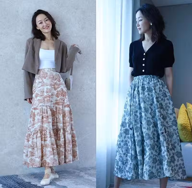 40歲女人的裙子可以是沒有花紋的素雅裙,也可以說大片印花的個性裙,還可以是充滿光澤感的緞面裙,充滿了風情。按照自己的需要來搭配,就能光靠裙子不停地切換風格,優雅又時髦。