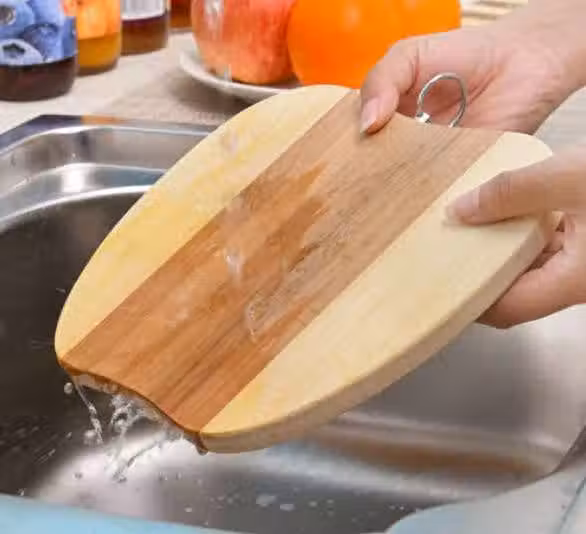 另外,我們廚房的砧板用久了其實也很容易藏污納垢,因為我們在切菜的時候,砧板會留下許多劃痕,這些劃痕是最容易隱藏細菌的,那麼,利用噴壺里稀釋的白醋在砧板上噴一噴,再將砧板放置10分鐘後刷干凈,就能很好的清除砧板中隱藏的細菌了。