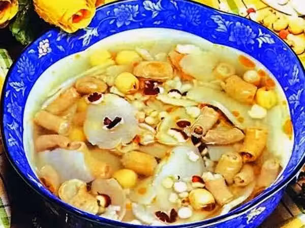 材料:白人參10克、蓮子10枚、冰糖30克