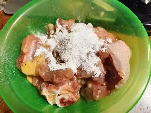 4️⃣ 鍋里放少量的油,加熱到8成以後轉小火,放入雞腿肉慢慢油煎。