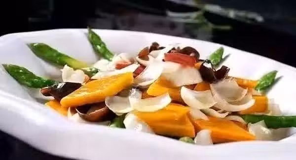 原料:蘆筍,南瓜,彩椒,油、鹽、百合