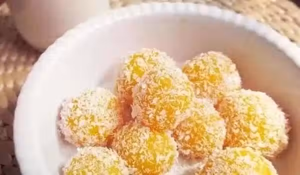 2、南瓜糊、糯米粉、白糖攪勻揉成麵糰,再滾成小圓球(稍微軟一些整出來很糯)。
