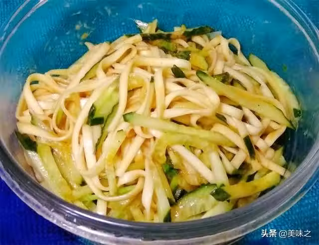 6、麵條瀝干水分,放碗里,放入黃瓜。