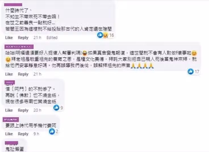 網友紛紛表示,「我搭順風車想問一下,紙錢跟臺幣的匯率是多少?(我很認真) 」、 「我大膽猜測,所有燃燒的紙幣就像空投般,在第三度空間皆有個類似像虛擬貨幣的交易所,集中兌換空間通用貨幣」、「我比較好奇的是燒一燒可以到另一個世界,那垃圾焚化爐...」