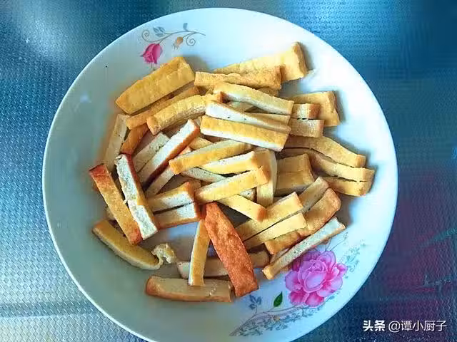 7.豆腐已經炸過一次,所以只要飄起來略微翻一下就可控油出鍋了。