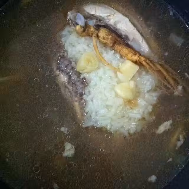 雞一隻;糯米100克;人蔘兩支;板栗隨意;紅棗6粒(隨意);老薑2片;蒜頭5粒(隨意);大蔥半棵;鹽少許