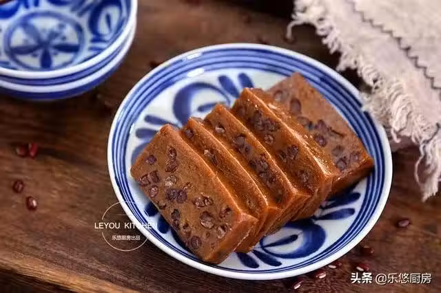這樣做好的年糕,顏色偏深一些,看起來像山楂糕。咬一口到嘴裡,甜糯綿蜜,越嚼越香。可以說是集合了糯米粉、蜜紅豆、紅糖的所有優點。