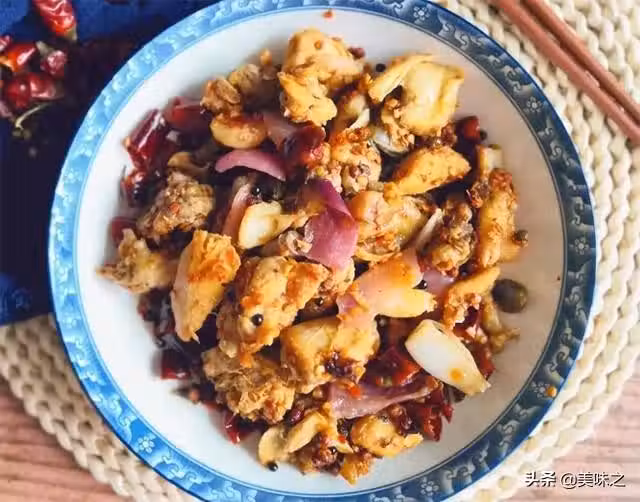 9、這時候干辣椒節也幾乎變焦糊出辣味了,你可以嘗嘗鹹淡來決定是否加鹽。