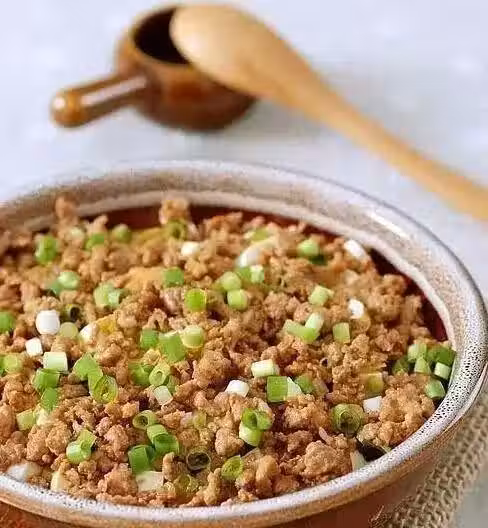 3.鍋里熱油,放入蔥姜爆香,倒入肉末,迅速劃散,倒入生抽翻炒幾分鐘加鹽即可。