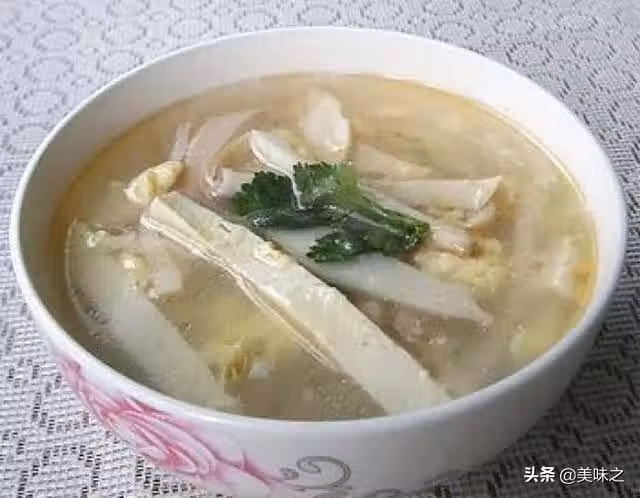 豆腐適量、杏鮑菇適量、雞蛋適量、香油適量、鹽適量、雞精適量、蔥適量、香菜適量。