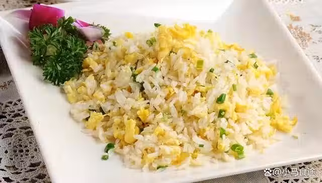 2.起鍋燒油,下入雞蛋液炒散,下入米飯快速炒勻,調入鹽、少許胡椒粉、少許雞精,充分炒勻,撒入小蔥花,拌勻即可出鍋裝盤。