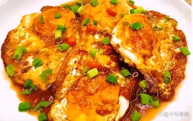 2.起鍋燒油,直接打入幾個雞蛋,煎至兩面焦香,烹入糖醋醬汁,收濃湯汁,撒入蔥花,小米辣、蒜末,炒勻即可出鍋裝盤。